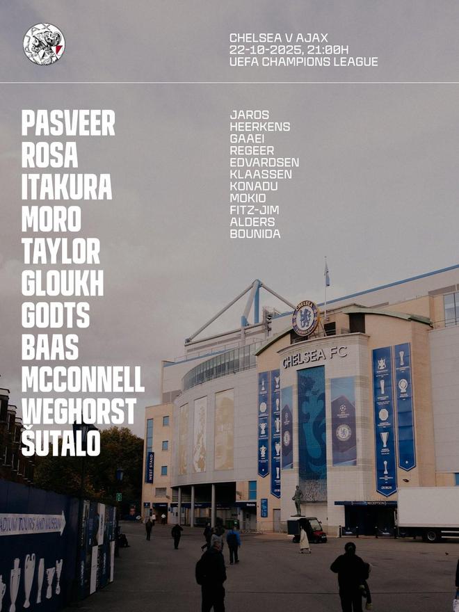 切尔西vs阿贾克斯:埃斯特旺搭档吉滕斯,恩佐、拉维亚出战